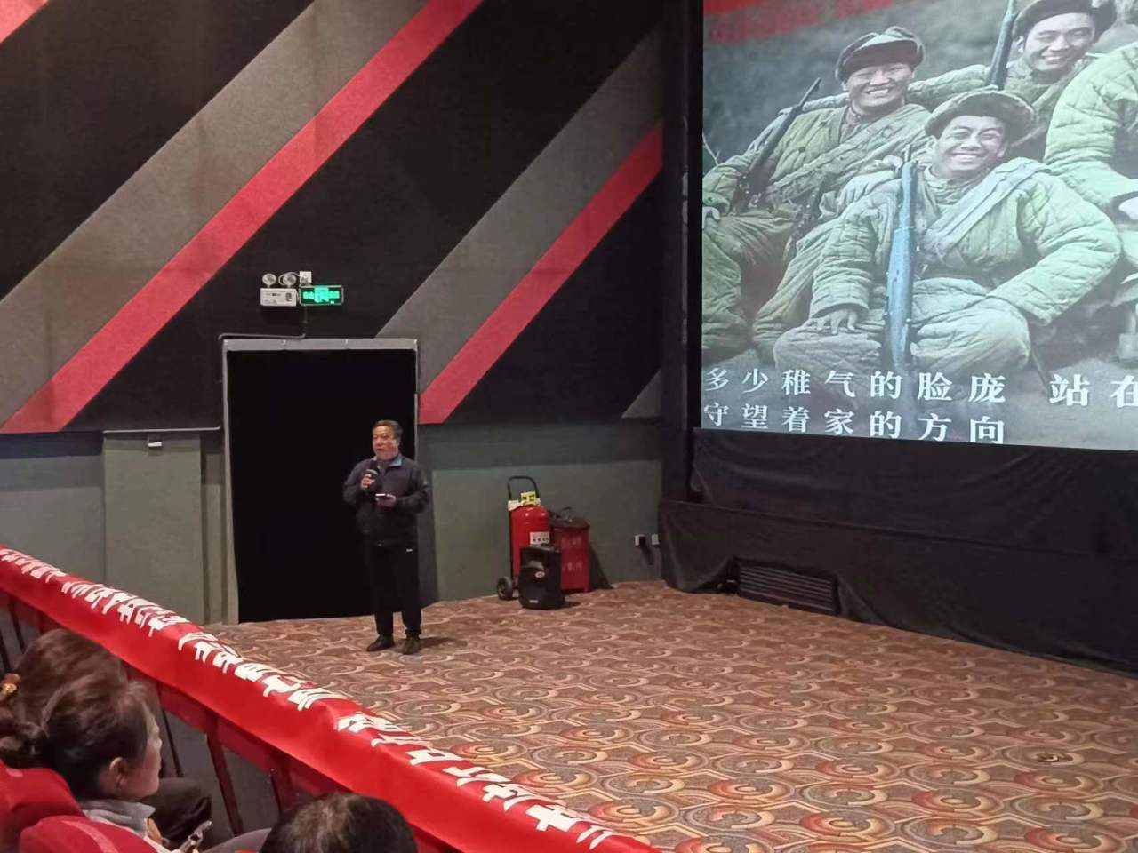 电影放映前,公司人文公司历史系主任王文涛老师以弘扬抗美援朝精神为主题,和到场党员重温了抗美援朝战争的背景和重大政治意义。