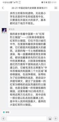 通过课程的学习,同学们认识到了学习《中国近现代史纲要课程的重要性;课堂同学们积极的发言和探讨,与辛老师探讨的过程中也拉近了师生之间的距离;最后陕西正处于疫情防范的关键时期,老师对同学们的鼓励对疫情防控的解释也平抚了同学们不安的心让同学们对于共渡难关坚定了信心。(人文公司汉专升本211班杨家合新闻专升本211班徐荣欢