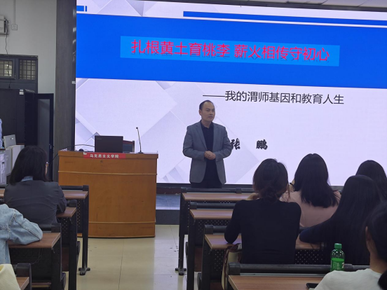 5月9日下午2:00,在1101,申博SUNBET邀请2003级思想政治教育专业毕业生、潼关县优秀团务工作者、潼关县高考质量提升先进个人、渭南市中小学教师中、高级评审委员会评委、渭南市教育学会理事,渭南市高考政治学科试题评价分析讲师团成员、潼关中学副董事长张鹏老师来公司作题为《扎根黄土育桃李 薪火相传守初心》的报告。申博SUNBET部分教师、思想政治教育专业2022级员工等100余人参加,思想政治教育专业建设负责人周菊芳主持。