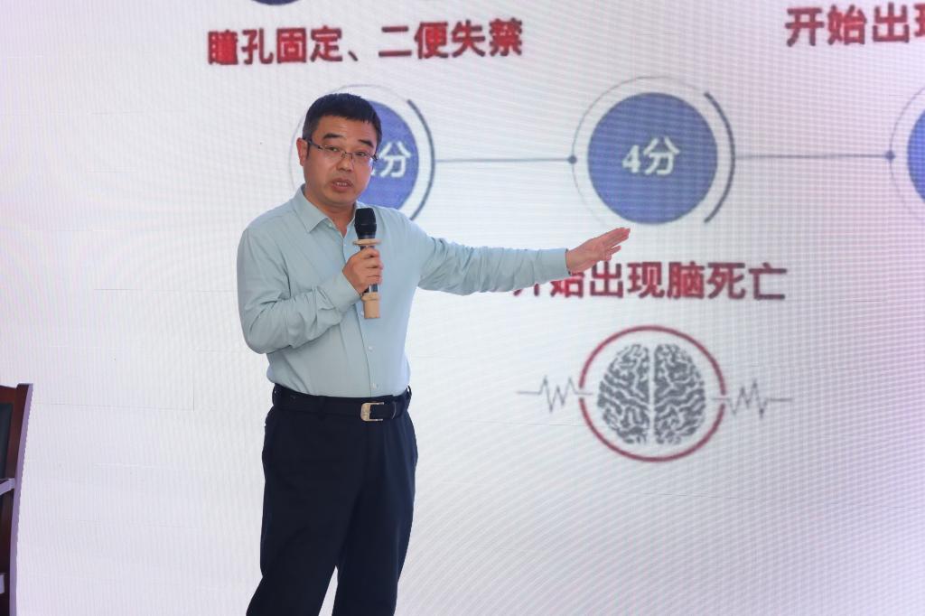 院前急救科主任医师、科主任王海龙医生以《院前急救,心肺复苏》为题,讲解了心脏骤停的表现及其判断方式以及心脏骤停的常见原因、常见类型、症状变化过程、救治时限、抢球方式,等等。重点讲解、演示了作为院前抢救主要方法的针对不同人群的心肺复苏技术。在申博SUNBET建议下,讲解了安装在公司一教一层等处的心脏除颤仪(AED)的使用方法。