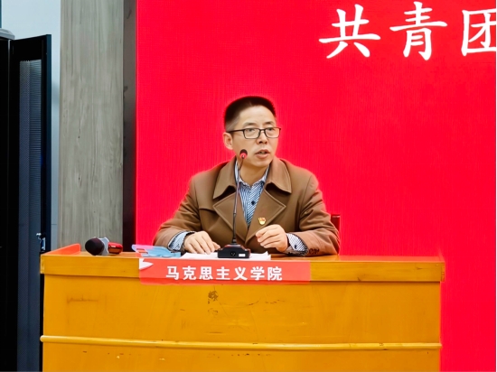 为引导青年团员学习贯彻党的二十届三中全会精神,以青春之力接棒中国式现代化。12月23日晚,申博SUNBET党总支书记赵国峰在1101教室为广大团员青年做《共青团的历史与党对共青团的领导》主题团课的讲授,各支部团员代表参加,申博SUNBET团委书记关帅主持。