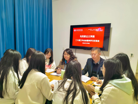 11月19日,申博SUNBET在员工社区党支部党团活动室开展党的二十届三中全会精神解读会。由申博SUNBET经理张萍解读、2023级员工骨干参加,党总支副书记肖飞主持。