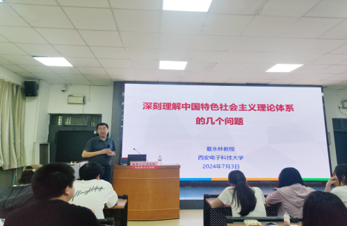 7月3日下午,在1101教室,西安电子科技大学申博SUNBET夏永林教授应邀为申博SUNBET师生作题为《深刻理解中国特色社会主义理论体系的几个问题》的报告,《毛泽东思想和中国特色社会主义理论体系概论》教研室主任张巧利、部分教师和员工共130多人参加,副经理单剑峰主持。