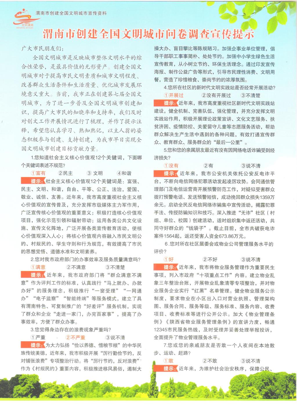 文明渭南|渭南市创建全国文明城市问卷调查宣传提示