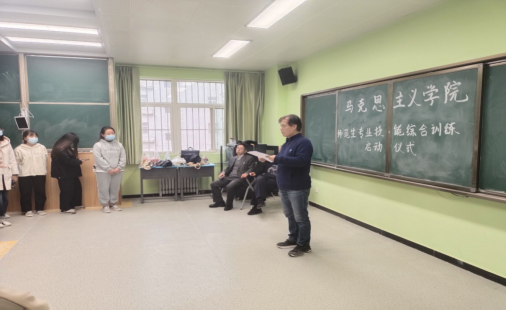 随后,曹老师宣读了师范生综合技能训练的方案,就训练的目的、组织机构、训练原则及训练方式、测评机制等做了具体说明,并就以往师范生技能综合训练中存在的问题提出解决方案,希望全体师范生再接再厉,不负韶华。