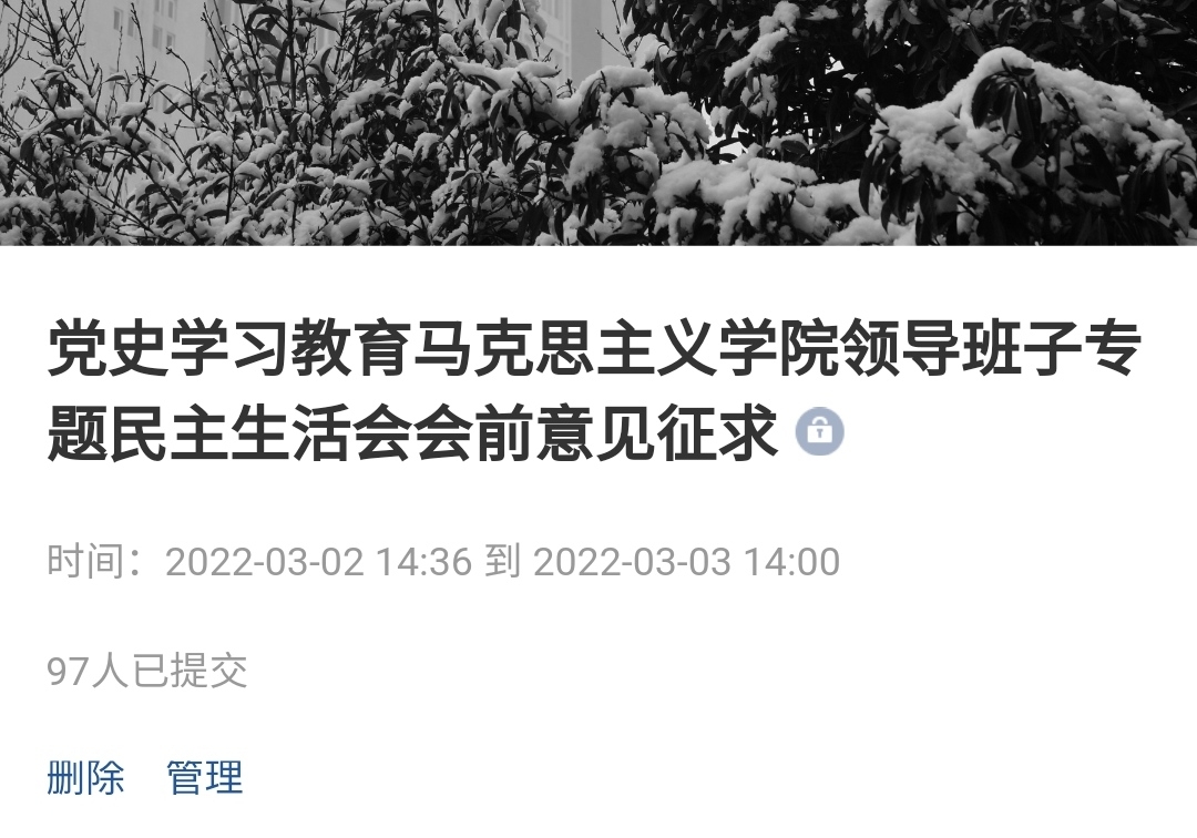 会前,按照公司总支安排,从3月2日起,公司各处级干部不同程度的有选择的在公司“网络党校”“知识库”中进一步深入学习了指定的学习材料;总支理论学习中心组组织了党史学习教育民主生活会会前专题学习;总支通过网络面向全体师生征求了师生对公司领导班子和领导班子成员的意见,并将意见及时反馈到了班子成员;班子成员不同程度地以灵活多样的方谈心谈话,交流思想,互相听取了对方意见;党总支负责人、班子成员按照公司党委要求,在前期征求意见、自查自检的基础上认真撰写了对照检查材料, 其中,公司领导班子对照检查材料、党政主要负责人材料经公司党委书记审核通过,班子其他成员材料经公司总支负责人审核通过。