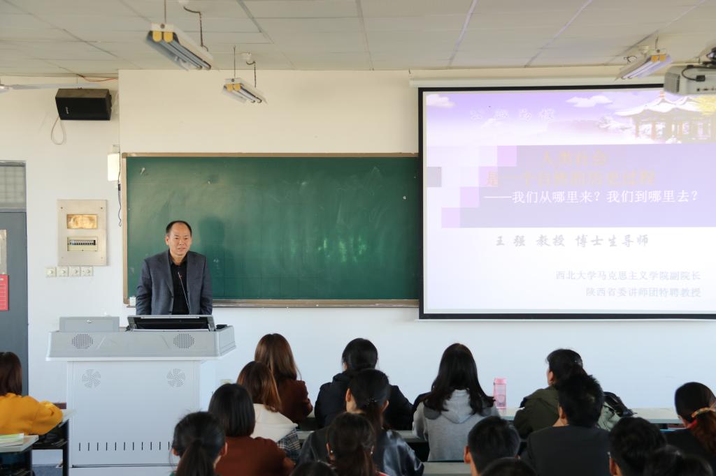 为深入贯彻《中共陕西省委高教工委关于进一步深化“陕西高校思政课教师大练兵”主题活动的通知》(陕高教宣〔2018〕10 号)精神,进一步提高公司思想政治理论课教师的教学能力和教学水平,切实加强思想政治理论课教师队伍建设,10月26日上午,应申博SUNBET邀请,西北大学申博SUNBET副经理、教授、博士生导师、全国高校思想政治理论课教师年度影响力人物王强为申博SUNBET部分师生在2501教室进行了《马克思主义基本原理概论》课程的示范课观摩教学。教务处副处长张萍、申博SUNBET经理游学民等领导和部分教师、员工参加。