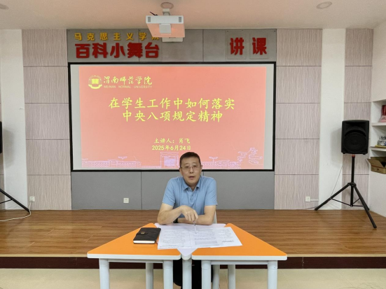 面向全体员工骨干系统阐释了中央八项规定精神的核心内涵与深远意义。他运用典型警示案例,生动解读了中央八项规定精神的核心要义,强调其本质在于厉行勤俭节约、反对奢靡浪费、恪守廉洁从政、弘扬务实作风。并立足作风建设与个人发展的辩证关系,寄语全体员工骨干要将中央八项规定精神深度融入日常学习科研、班团组织建设、创新创业实践、职业发展规划等过程中,筑牢遵规守纪的思想防线,将纪律意识内化于心、外化于行,以更高的标准、更严的纪律要求自我,成为有理想、有道德、有文化、有纪律的新时代“四有”青年。