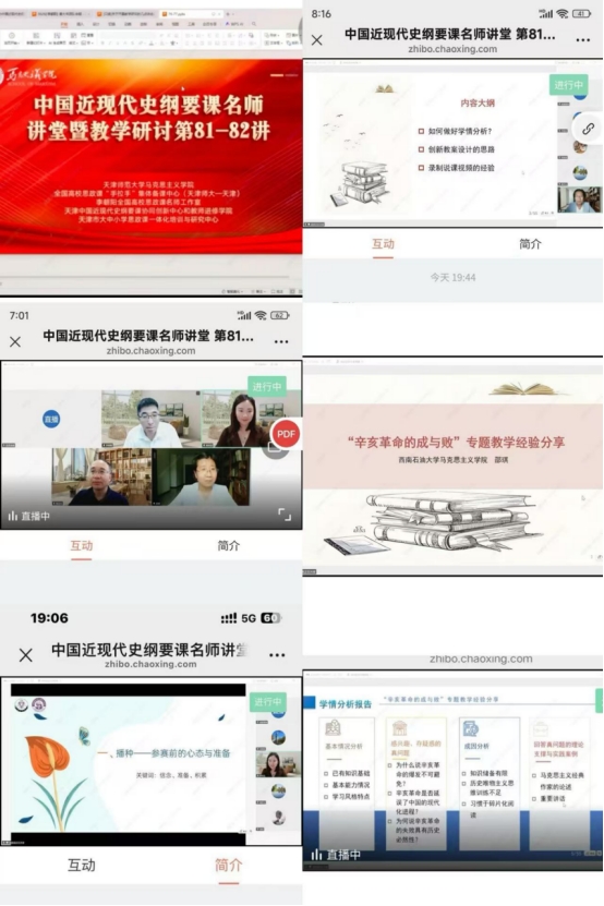 6月25日晚,由天津师范大学申博SUNBET、全国高校思政课“手拉手”集体备课中心、李朝阳全国高校思政课名师工作室、天津中国近现代史纲要课协同创新中心和教师进修公司等部门、联合举办的中国近现代史纲要课名师讲堂暨教学研讨第81-82讲在线上举行。申博SUNBET《中国近现代史纲要》教研室组织教师线下、线上结合的方式参与备课学习。